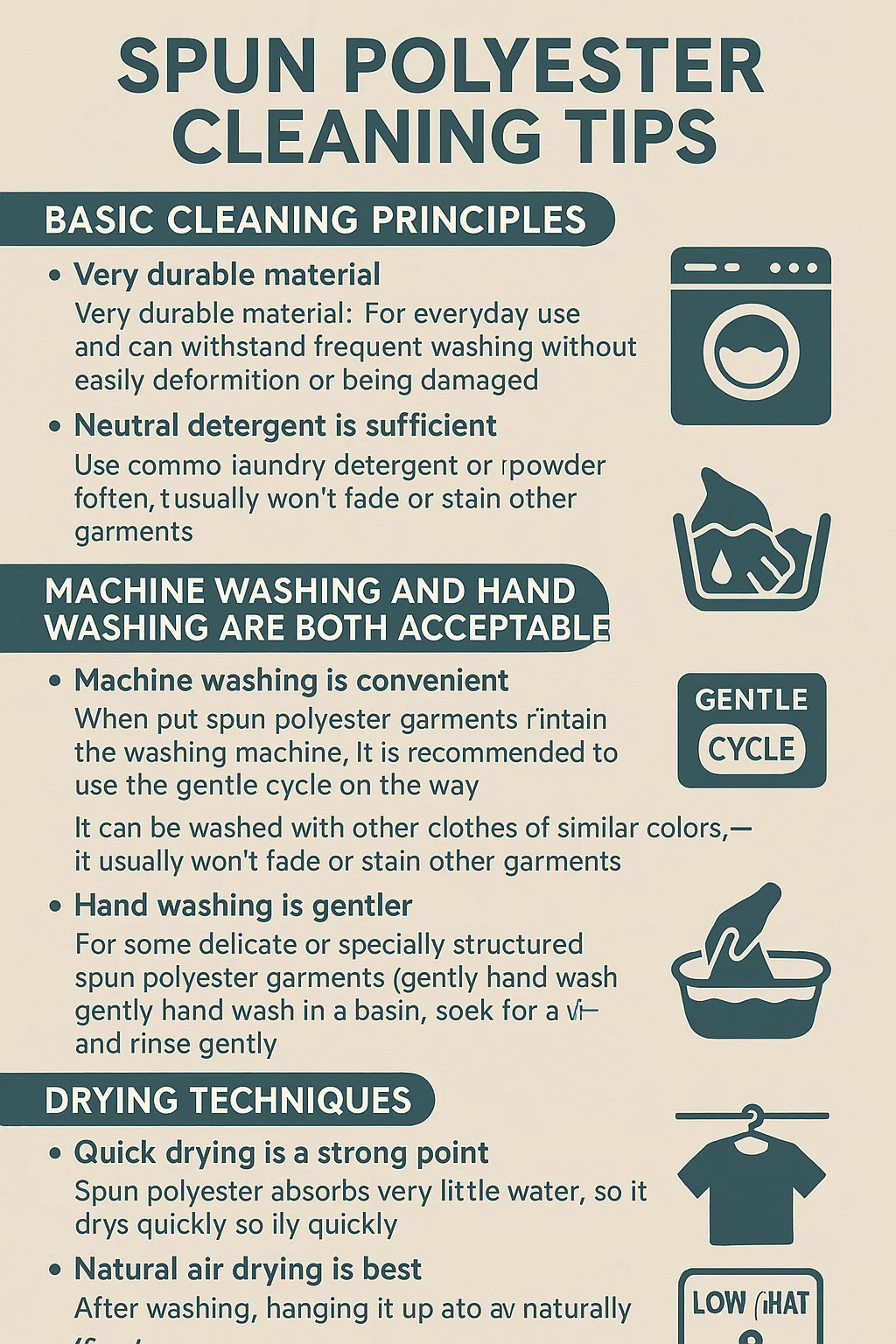 • Temperature is not a big problem (but moderation is key): In most cases, using warm or cold water is the best option. Although polyester itself can withstand high temperatures, low-temperature washing is safer to protect the garment's shape and color, and to prevent it from reacting negatively with any other clothes being washed together.