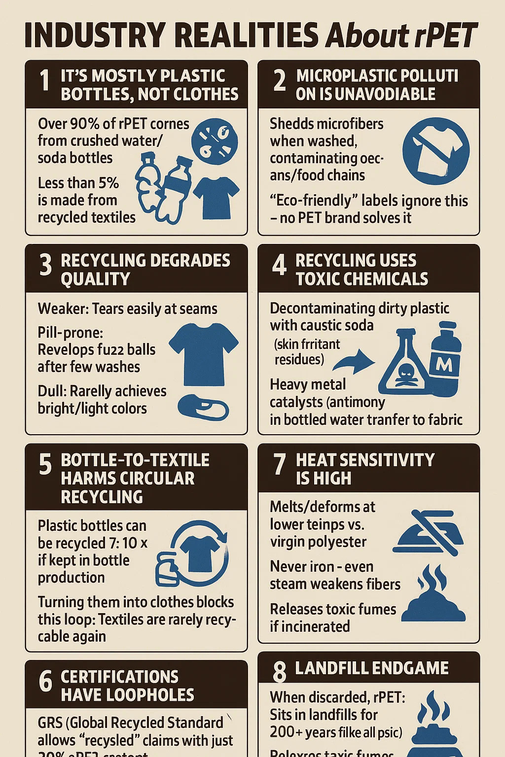 "Eco-friendly" labels ignore this—no rPET brand solves it.